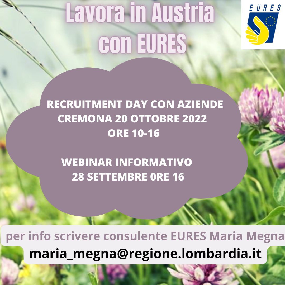 Per informazioni e registrazioni al seminario e candidature: scrivere alla consulente EURES Maria Megna alla mail maria_megna@regione.lombardia.it