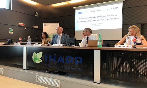 Nell’ambito del convegno “Inapp al servizio delle politiche per il Paese. Un anno come organismo intermedio del Pon Spao" sono intervenuti il Presidente di Inapp Stefano Sacchi, Salvatore Pirrone, Direttore generale ANPAL, Fabia D'Andrea, Ministero del lavoro